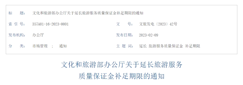 根據(jù)通知,2023年4月1日(含當日)以后取得旅行社業(yè)務經(jīng)營許可證的旅行社,可申請暫緩交納保證金,補足保證金期限為2024年3月31日。