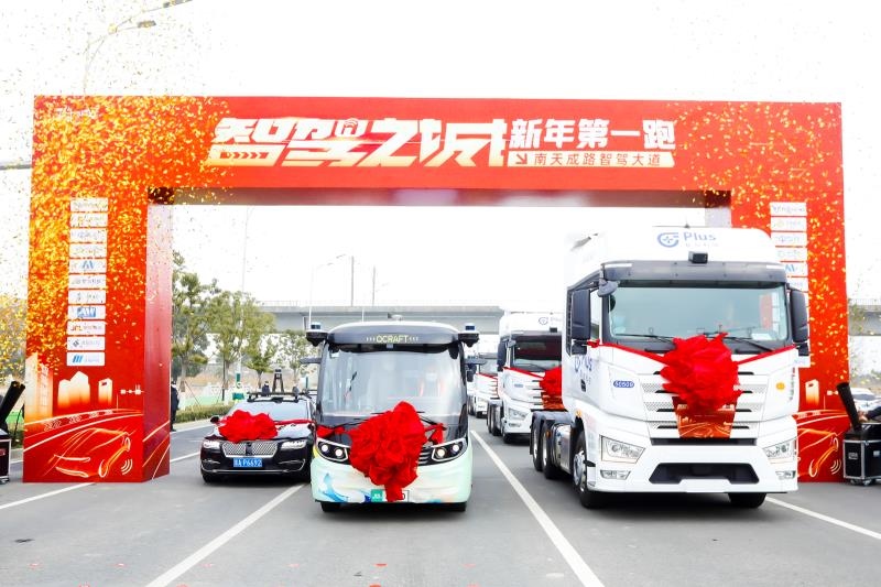 蘇州開(kāi)展“智駕之城新年第一跑”,多款無(wú)人駕駛車(chē)輛同時(shí)上路。(蘇州高鐵新城管委會(huì)供圖)