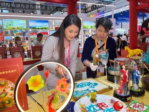 “我們的糖人制作技藝興于清朝道光年間,技法分為吹、塑、畫(huà)。結(jié)合消費(fèi)新需求,我們推出了一些新產(chǎn)品,很受年輕人喜歡。在消博會(huì)上,通過(guò)展示糖人技藝,讓更多的消費(fèi)者了解傳統(tǒng)文化,喜歡上我們的作品。”沈陽(yáng)李氏糖人制作技藝第五代傳承人李鳳艷表示。