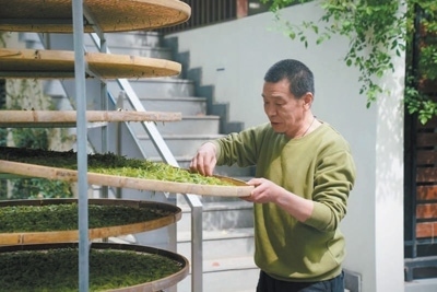“也是巧了!原本兩周前房間就預(yù)訂光了,有個來自上海的團隊預(yù)約到茶山采茶,但今天客人臨時調(diào)整房間,多出來一間房,你們感興趣也可以去采茶?!碑吔终f,“茶園就在后山上,走著就到了。明天上午采茶,下午晾曬,晚上炒制,當晚就能喝到自己親手摘的綠茶了?!倍庞轩i和老伴兒聽了很感興趣,當即決定多住一晚。