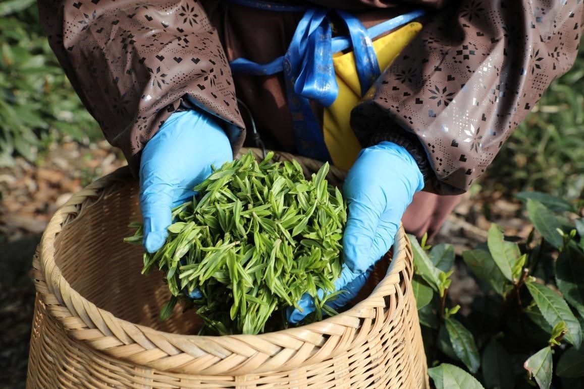 像林阿姨這樣熟練的采茶工,從早上七點多開始,一直采到下午五點,預(yù)計能采4斤鮮葉,約可產(chǎn)出1斤的干茶?!敖衲甑牟枞~賣相好、顏色正、大小均勻。你看這葉片多漂亮!”林阿姨一邊說著一邊低頭忙碌。