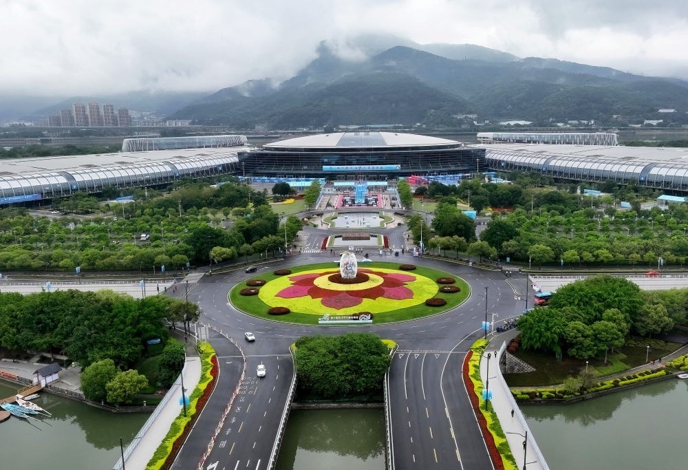這是4月26日拍攝的第六屆數(shù)字中國建設(shè)峰會主辦地福州海峽國際會展中心外景(無人機照片)。新華社記者 魏培全 攝