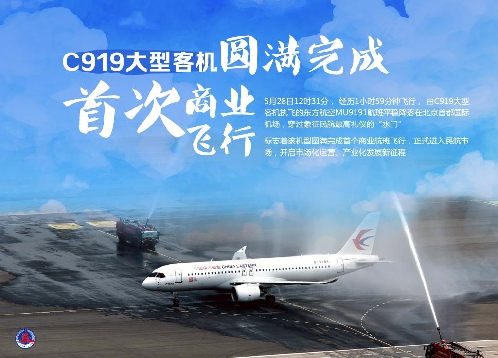 5月28日12時(shí)31分,經(jīng)歷1小時(shí)59分鐘飛行,由C919大型客機(jī)執(zhí)飛的東方航空MU9191航班平穩(wěn)降落在北京首都國(guó)際機(jī)場(chǎng),穿過象征民航最高禮儀的“水門”,標(biāo)志著該機(jī)型圓滿完成首個(gè)商業(yè)航班飛行,正式進(jìn)入民航市場(chǎng),開啟市場(chǎng)化運(yùn)營(yíng)、產(chǎn)業(yè)化發(fā)展新征程。新華社發(fā)