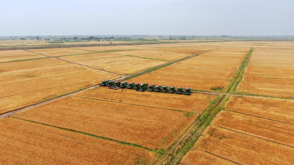 ??在金色麥浪涌動(dòng)的示范創(chuàng)意園內(nèi),10多臺(tái)聯(lián)合收割機(jī)依次駛?cè)胱鳂I(yè)區(qū)。種糧大戶王義說:“今年我種了1016畝小麥,小麥長勢(shì)良好,麥穗大,顆粒比較飽滿,每畝產(chǎn)量預(yù)計(jì)超過1000斤。”