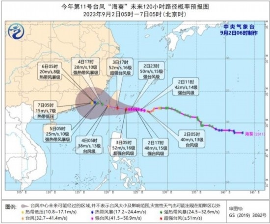 今年第11號(hào)臺(tái)風(fēng)“海葵”未來(lái)120小時(shí)路徑概率預(yù)報(bào)圖