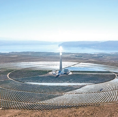 青海海南藏族自治州,太陽能生態(tài)發(fā)電園區(qū)內(nèi)的50兆瓦熔鹽塔式光熱電站。本報記者 伊 霄攝