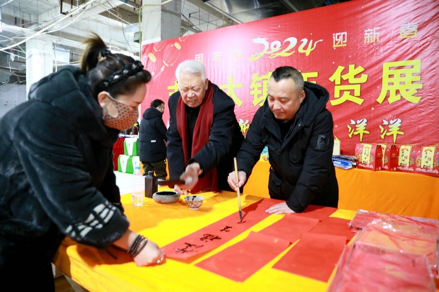 著名書法家柴義現(xiàn)場為市民免費(fèi)書寫春聯(lián)
