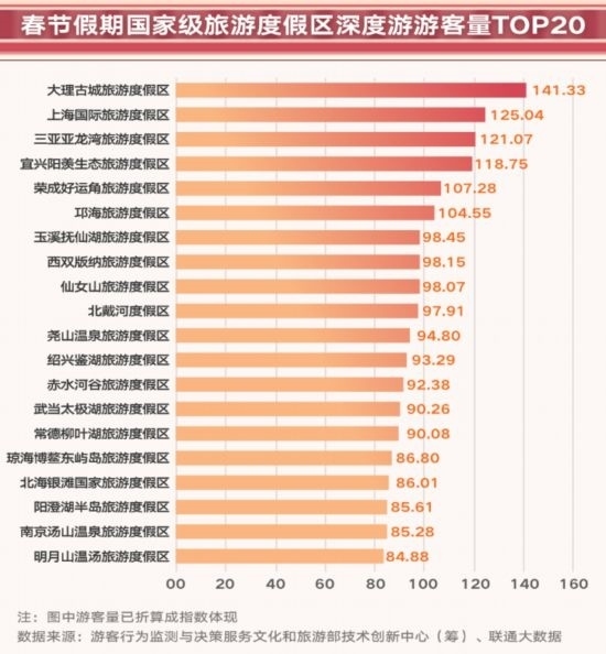 春節(jié)假期,全國63家國家級旅游度假區(qū)共接待深度游客(在度假區(qū)停留2小時(shí)以上的游客人數(shù),本部分以下簡稱“深度游”)793.4萬人,按可比口徑較2023年增長了42.3%,增長顯著。其中深度游前20的度假區(qū)共接待478.5萬人。