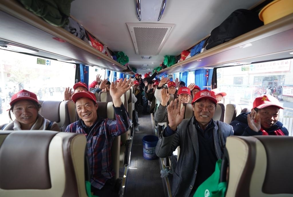 “這是我首次乘坐免費(fèi)的務(wù)工專車,途中還提供用餐,政府把我們直接送到‘廠門口’就業(yè),我覺得很貼心?!眲?wù)工人員冉茂軍說。