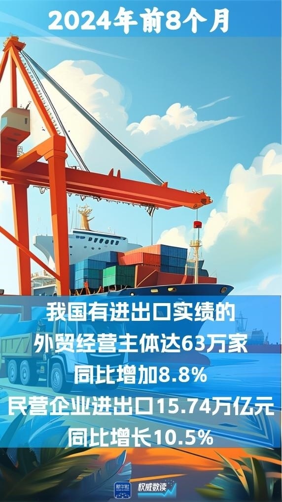 我國外貿(mào)經(jīng)營主體持續(xù)活躍,前8個月有進(jìn)出口實績的外貿(mào)經(jīng)營主體達(dá)63萬家,同比增加8.8%。其中,外貿(mào)主力軍民營企業(yè)進(jìn)出口15.74萬億元。
