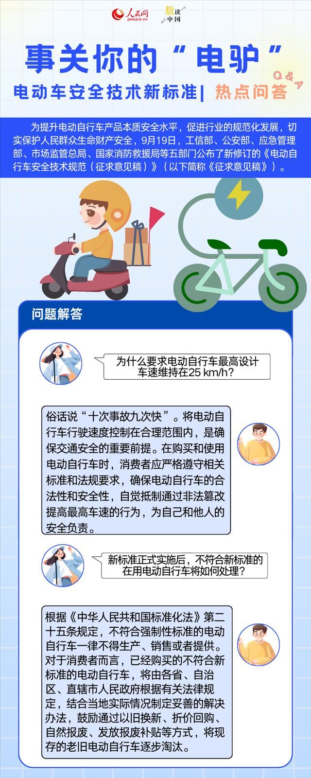 人民網(wǎng)北京9月19日電 (申佳平、方經(jīng)綸)為提升電動(dòng)自行車產(chǎn)品本質(zhì)安全水平,促進(jìn)行業(yè)的規(guī)范化發(fā)展,切實(shí)保護(hù)人民群眾生命財(cái)產(chǎn)安全,9月19日,工信部、公安部、應(yīng)急管理部、市場(chǎng)監(jiān)管總局、國(guó)家消防救援局等五部門公布了新修訂的《電動(dòng)自行車安全技術(shù)規(guī)范(征求意見稿)》(以下簡(jiǎn)稱《征求意見稿》)。