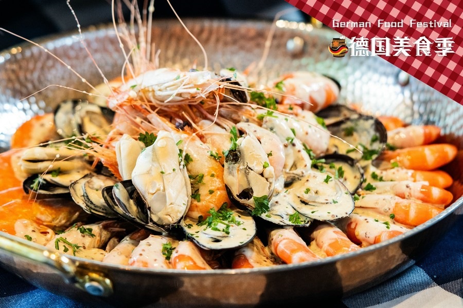 馨咖啡——海鮮洋酒自助,在行政總廚Jerry張強(qiáng)的加持下,再度增添美味的獨(dú)特體驗(yàn),8月9日—8月25日,正宗德式美食驚艷亮相!德國(guó)美食以其豐富多樣、實(shí)在美味和濃郁地方特色而聞名。來(lái)自德國(guó)巴伐利亞地區(qū)的特色美食“烤豬肘”, 外皮金黃酥脆,內(nèi)部肉質(zhì)鮮嫩多汁,搭配酸菜和土豆泥,口感豐富; 德國(guó)香腸種類繁多,芝士香腸、盤腸、圖靈根腸、法蘭克福腸、黑胡椒腸,制作工藝獨(dú)特,口味多樣;維也納炸豬排,酥脆的外皮和鮮嫩的肉質(zhì)形成的鮮明口感對(duì)比;德式芥末燴海鮮,德式芥末為這道菜帶來(lái)獨(dú)特的風(fēng)味,奶油、白葡萄酒、香草等調(diào)料,使湯汁變得濃郁醇厚,海鮮鮮嫩多汁,湯汁濃郁鮮美。更有享譽(yù)盛名的德國(guó)啤酒選擇,大麥的醇厚香氣、啤酒花的微微苦澀相互交織,營(yíng)造出一種平衡而美妙的口感。