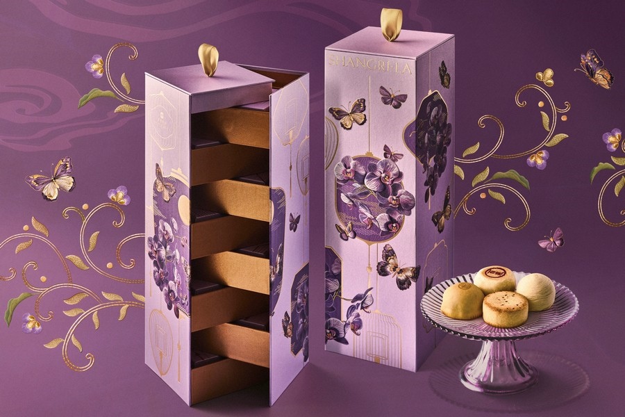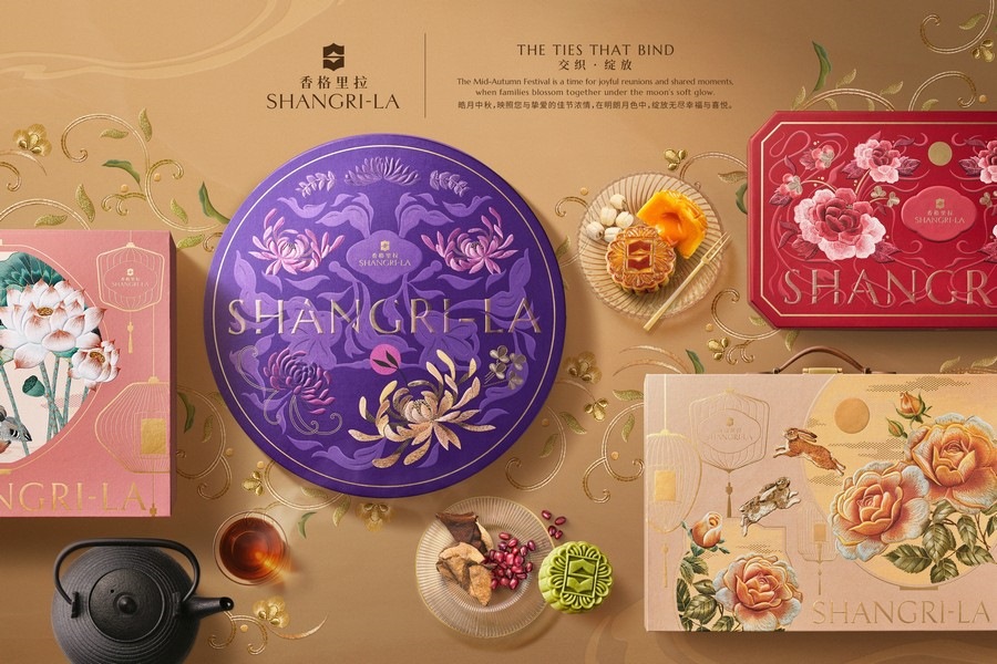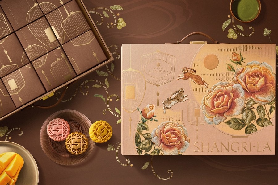 童心未泯家庭款月餅,創(chuàng)意可愛(ài)的小火車造型,一盒囊括哈密瓜鳳梨雙果、紅豆山楂、巧克力牛奶芯三種新穎口味,滿載溫馨與甜蜜緩緩駛來(lái);賞心月目雪媚娘流心月餅,打破傳統(tǒng)的禮盒,采用了別致巧思的浪漫禮包,包內(nèi)裝有雪媚娘巧克力流心核桃栗子、烏龍白桃水蜜桃流心、陳皮土鳳梨金桔流心和抹茶紅豆草莓流心月餅,細(xì)膩爽口,唇齒滿足, 給味蕾帶來(lái)別樣享受;八方鴻運(yùn)月餅,八珍玉食,八面玲瓏,禮盒中包含廣式單黃白蓮蓉、蘇式百果椒鹽、瓊式純鳳梨酥、京式自來(lái)紅、潮式松露鮑魚(yú)、晉式蛋月燒棗泥松仁、滇式玫瑰云腿、川香牛肉藤椒軟心,可甜可咸,款款新意,薈萃八方鴻運(yùn),饋贈(zèng)四方親朋;香格里拉手提箱月餅,設(shè)計(jì)精巧的手提箱,薈萃亞洲滋味,馬來(lái)西亞白咖啡、椰汁西米、宇治抹茶、榴蓮、芒果柚子、香蘭葉月餅,一盒六味,配上軟糯綿化的桃山皮,一口甘香,馥郁悠長(zhǎng)。一系列月餅禮盒,結(jié)合濃郁當(dāng)?shù)靥厣摹把蛉舛Y盒”、“燒麥禮盒”、“烤羊腿禮盒”,還有香格里拉定制青島啤酒、醬香白酒、甄選紅酒等為節(jié)日助興。