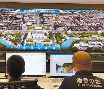 客流量浮動、監(jiān)測點(diǎn)位數(shù)據(jù)變化、AI風(fēng)險預(yù)警……在西安城墻管委會信息中心,一個個詳細(xì)的實(shí)時數(shù)據(jù)每天都在大屏幕上滾動呈現(xiàn)。輕擊鼠標(biāo),虛實(shí)結(jié)合的數(shù)字“城墻”便出現(xiàn)在人們眼前,從外部的磚瓦彩繪到內(nèi)部的建筑結(jié)構(gòu),透過“數(shù)字方艙”超大屏端頁面,西安城墻的各種信息映入眼簾。這座“虛擬城墻”便是西安城墻數(shù)字方艙綜合管理平臺的一部分。近年來,西安城墻運(yùn)用數(shù)字孿生、人工智能、大數(shù)據(jù)、物聯(lián)網(wǎng)、地球物理等前沿技術(shù),與高校、科研院所和骨干企業(yè)共建,打造了一套集文物保護(hù)、文旅運(yùn)營、應(yīng)急管理、防汛指揮等功能于一體的“文化遺產(chǎn)數(shù)字化保護(hù)利用綜合解決方案”,實(shí)現(xiàn)了關(guān)鍵技術(shù)突破及文保文旅數(shù)據(jù)的融合共享。