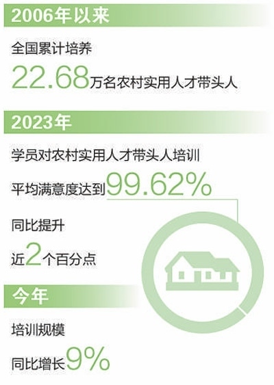 2006年以來,依托帶頭人培訓項目,全國已累計培養(yǎng)22.68萬名農村實用人才帶頭人?!皫ь^人培訓以更新理念、開闊思路和增強能力為核心,旨在針對性提升學員各方面技能素質,進一步發(fā)揮好農村實用人才帶頭人示范引領作用,強化鄉(xiāng)村全面振興人才支撐?!鞭r業(yè)農村部人事司有關負責人說。