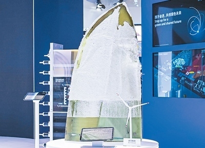 西門子能源展出全球首款可回收風(fēng)機(jī)葉片。葉片使用周期結(jié)束后,其部件材料可通過(guò)工業(yè)化方式,進(jìn)行樹脂和纖維材料的安全環(huán)保分離,回收的纖維材料仍保持良好性能。本報(bào)記者 廖睿靈攝