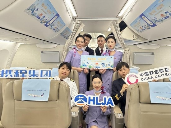 當日,飛抵佛山的“攜程號”是中聯(lián)航彩繪機隊的第15位成員,在客艙內(nèi),身著全新制服的乘務(wù)組精心策劃了豐富的客艙活動并為首航旅客分發(fā)包含“攜程號”創(chuàng)意來源“千里江山圖”中的山峰、攜程吉祥物等元素的紀念品。此次首航的旅客們,也是佛山機場新候機樓的首批體驗者,在一片歡聲笑語中,從嶄新的航站樓出發(fā),開始他們新的旅程。