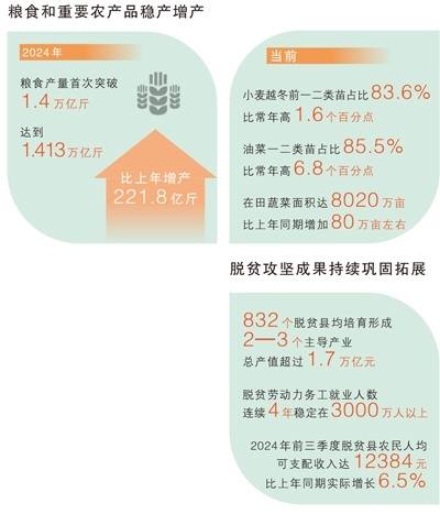 2024年,我國糧食和重要農(nóng)產(chǎn)品實(shí)現(xiàn)穩(wěn)產(chǎn)增產(chǎn)。