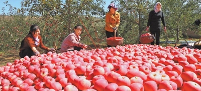 甘肅靜寧縣雷大鎮(zhèn)蘋果豐收。