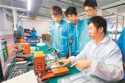 江西省吉安市峽江縣采取“校企合作”等方式發(fā)展職業(yè)教育,有針對(duì)性地培養(yǎng)企業(yè)需要的專業(yè)技術(shù)人才,拓寬學(xué)生就業(yè)渠道。圖為近日,峽江縣職業(yè)中專的學(xué)生在學(xué)習(xí)鋰電池檢測技術(shù)。