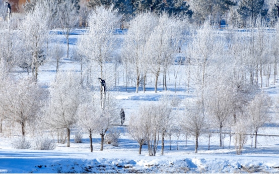12月1日,內(nèi)蒙古自治區(qū)呼倫貝爾市出現(xiàn)霧凇奇觀,海拉爾區(qū)沿河公園整片樹林被白霜覆蓋,晶瑩剔透,分外美麗。