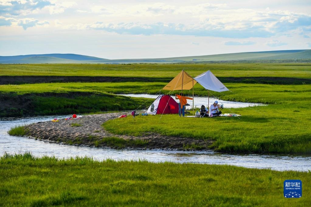 7月19日,游客在西烏珠穆沁旗巴拉嘎爾河畔露營(yíng)。