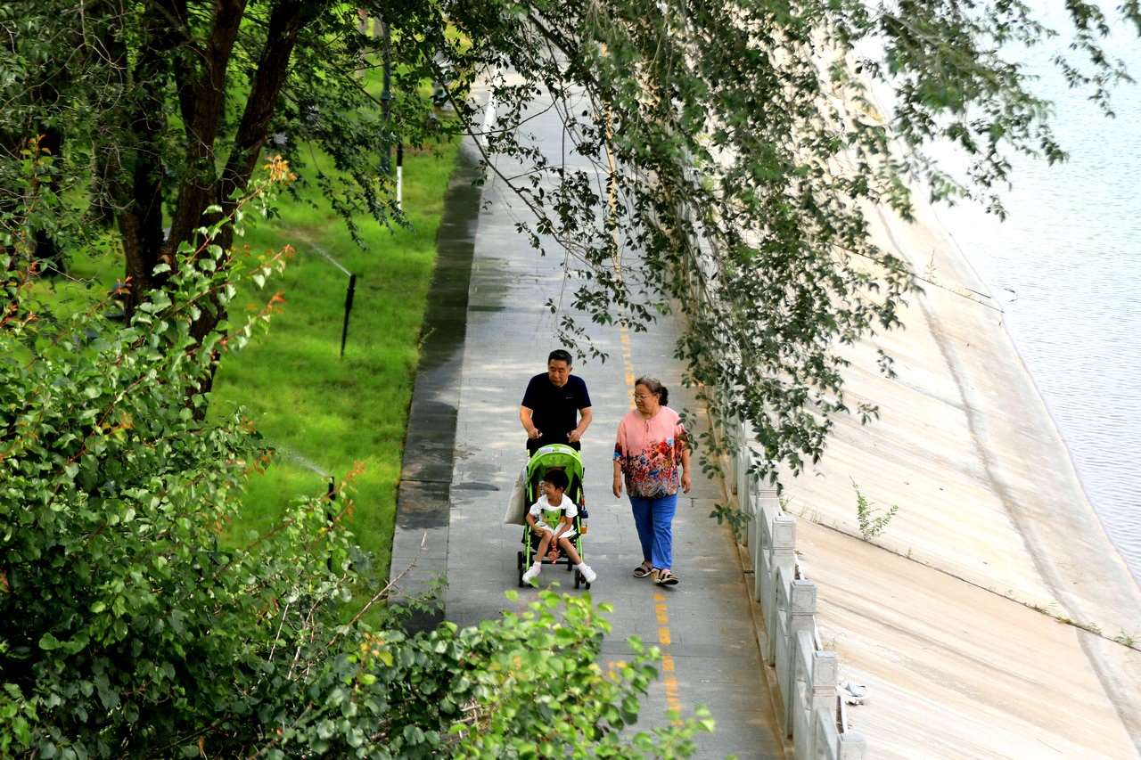 8月4日,市民在呼和浩特萬通路“青城綠道”穿行。