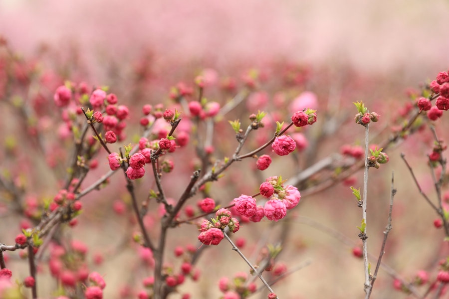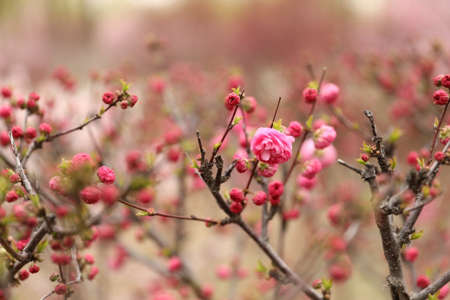 據(jù)了解,榆葉梅是薔薇科桃屬灌木稀小喬木植物,花果期為4月至7月,先開花,后長葉,其果實(shí)近球形,紅色,果肉薄。因其葉片像榆樹葉,花朵酷似梅花而得名榆葉梅。