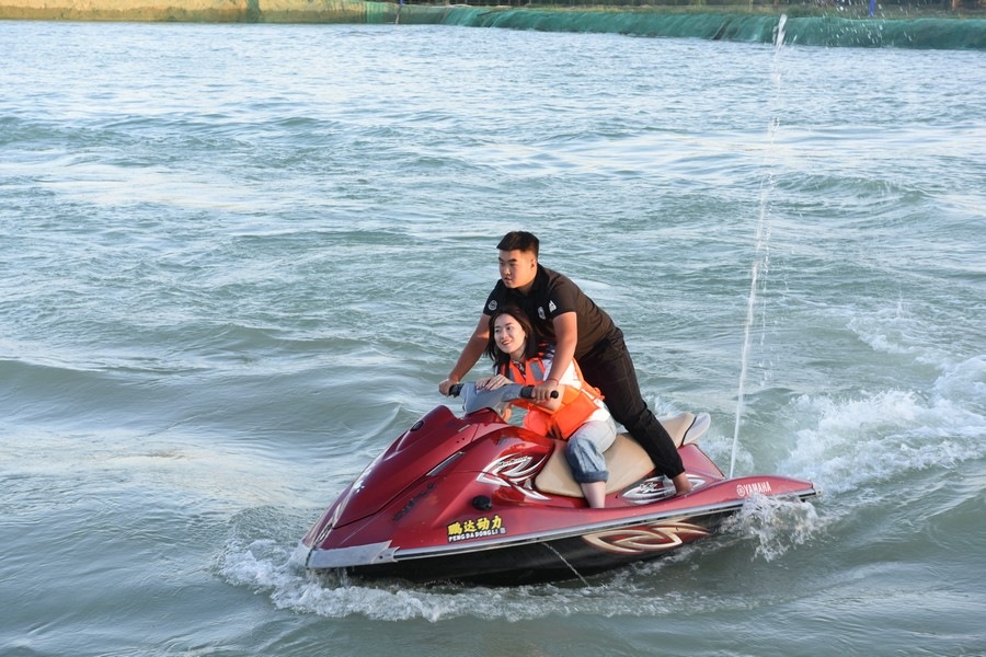 游客乘坐摩托艇感受水上的驚險(xiǎn)刺激 記者 張楊攝影