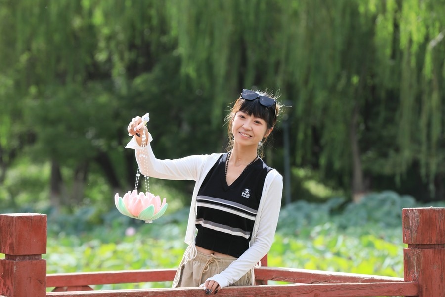 初秋時(shí)節(jié),水光瀲滟間,公園內(nèi)的滿池荷花嬌艷、荷葉青翠,漫步棧道中,仿佛置身于一幅詩(shī)意的畫卷。