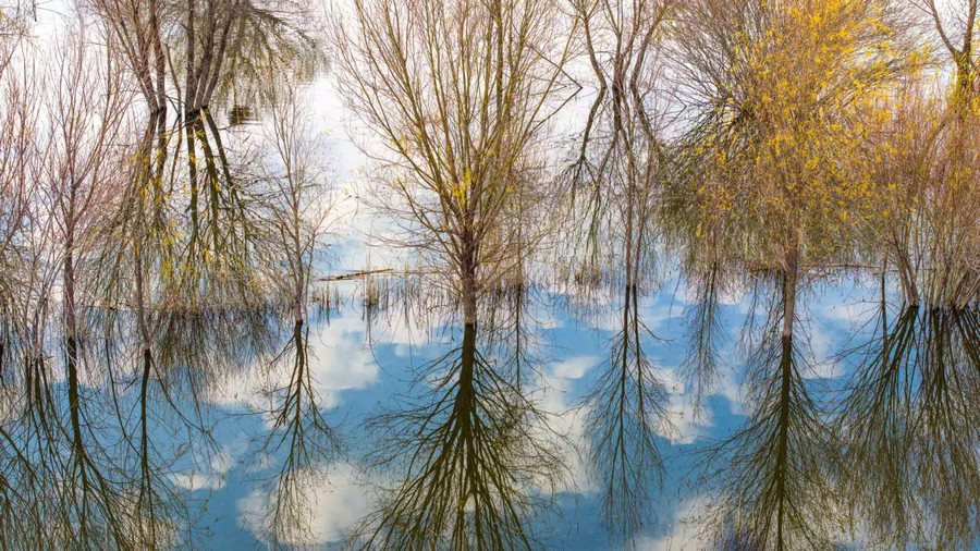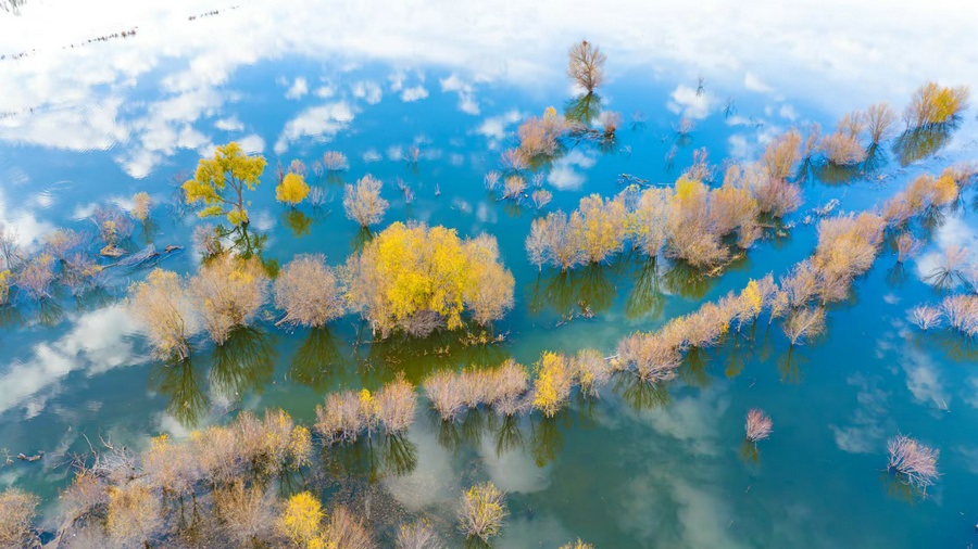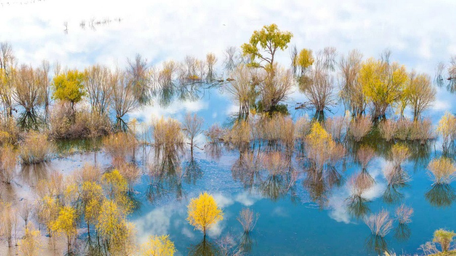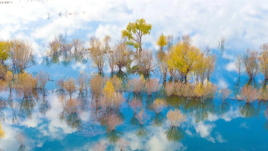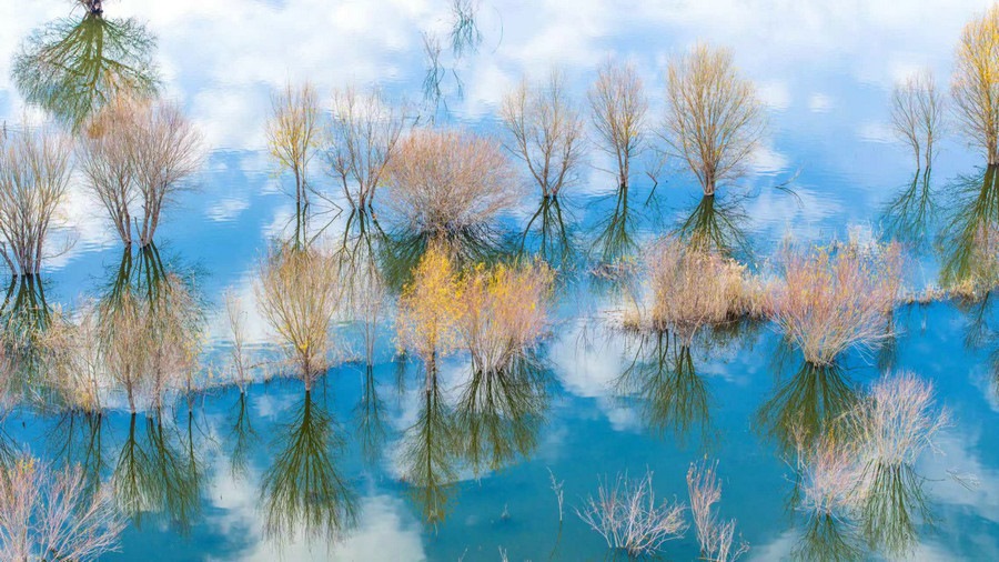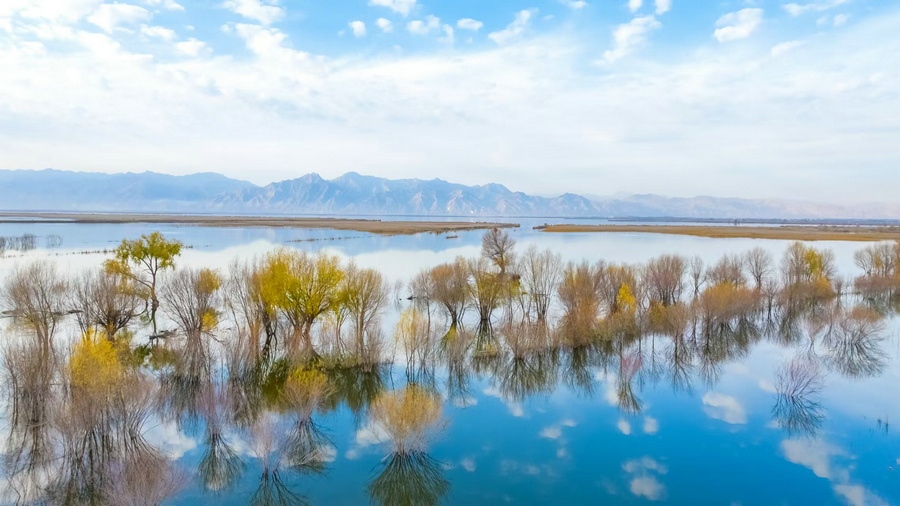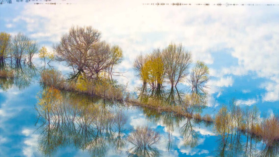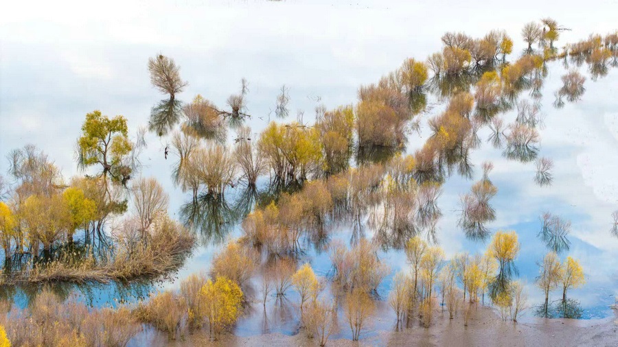 秋冬交替之際,位于呼和浩特土默特左旗的哈素海,水天一色,樹(shù)影倒映,構(gòu)成一幅美麗的水彩畫(huà)卷,猶如人間仙境。 樂(lè)炎 攝影