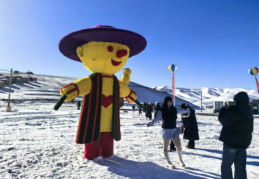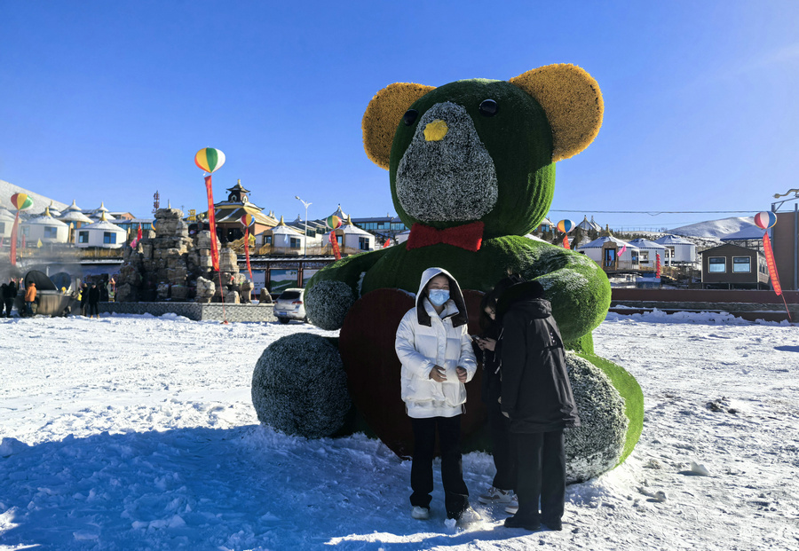 游客在紅石崖冰雪文化旅游季活動(dòng)現(xiàn)場(chǎng)打卡