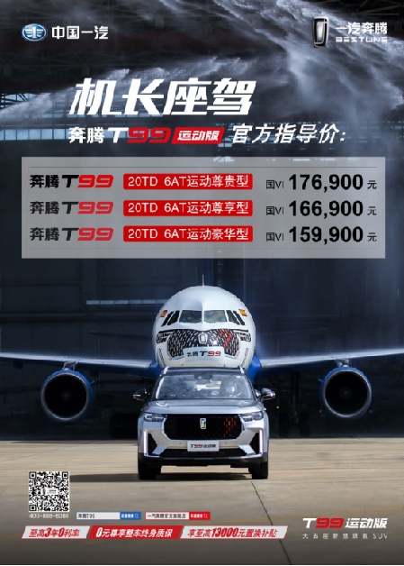 6月3日,奔騰T99 運(yùn)動版空中發(fā)布會,于??谇巴戏实腏D99航班上舉行。