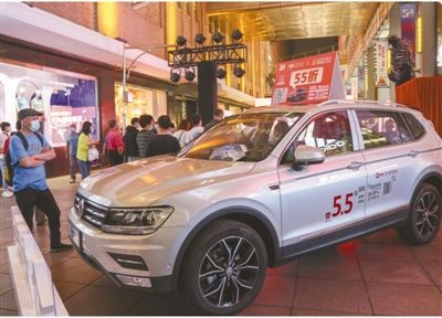 近日,上海南京路步行街上,不少商家采取“線上線下”聯(lián)動(dòng)方式推出各類汽車促銷活動(dòng)。圖為促銷活動(dòng)現(xiàn)場。人民視覺