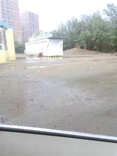 6月29日16時(shí)許,記者來到回民區(qū)塞外安康新居小區(qū)。該小區(qū)旁邊是一處老舊廠區(qū)。記者開車進(jìn)入這個(gè)老舊廠區(qū)看到,在大門的左手邊有一臺(tái)撬裝式加注裝置。這時(shí),一名中年婦女告訴記者,加油往里走,這臺(tái)裝置壞了。隨后,記者開車又往廠區(qū)院里走了約50米,在路的右側(cè)有一臺(tái)撬裝式加注裝置,這臺(tái)裝置距離塞外安康新居小區(qū)的居民樓很近(如圖二)。記者把車停在加注裝置旁邊,一位老人熟練地打開車的油箱蓋,問記者加多少錢的油。加油過程中,老人告訴記者,“這個(gè)撬裝式加注裝置是向安監(jiān)部門申請(qǐng)的,供單位內(nèi)部用油?!庇浾咴儐枺骸凹热皇枪﹩挝粌?nèi)部使用,那對(duì)外加油不怕被查?”老人說:“執(zhí)法部門查不查,那是老板的事兒。因?yàn)橛捅阋耍瑏磉@里加油的人不少?!边@里92號(hào)汽油每升為4.3元。