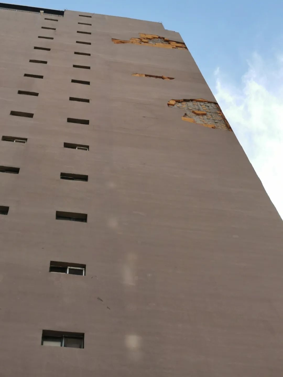 近日,家住呼和浩特市金橋開發(fā)區(qū)聞都雅苑的居民向本報反映稱,小區(qū)4號樓外墻保溫層出現(xiàn)了大面積脫落的情況。有一次,掉下來的保溫層還砸傷了一位居民,實在是太危險了……