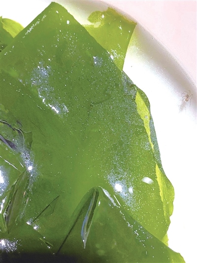 據(jù)劉女士回憶,8月9日晚,她和女兒到鄂爾多斯市伊金霍洛旗額爾敦傳統(tǒng)涮(伊旗店)吃飯,母女二人正吃得暢快之際,突然發(fā)現(xiàn)在一盤海帶里有一只蜘蛛(如圖),在盤子里爬來爬去,看見這一幕,母女二人胃口全無。隨即,劉女士和服務(wù)人員進(jìn)行了溝通。