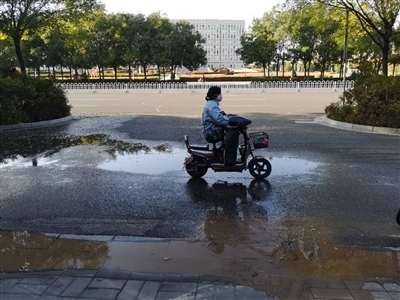 10月12日下午,巴彥淖爾日?qǐng)?bào)社簽約攝影師張偉反映:“河套公園北出口附近被水淹了,有清水不停地從兩塊路邊石之間的縫隙中冒出。”
