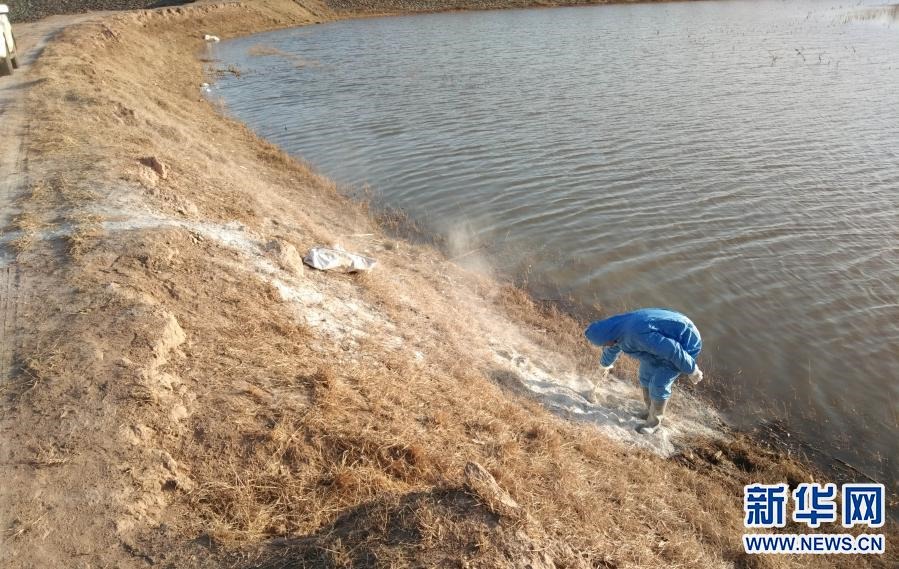 3月21日,達(dá)拉特旗疫控人員對黃河國堤內(nèi)死豬打撈地進(jìn)行消毒。新華社發(fā)