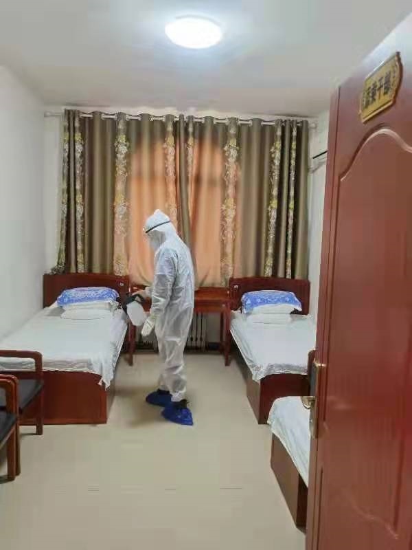 對樓層全封閉管理,增加公共區(qū)域消殺頻次,為負責(zé)清潔消殺人員配發(fā)了防護服、護目面罩、醫(yī)用手套,確保工作人員自身安全,認真做好自身防護的同時,對停留公寓的14名乘務(wù)人員每日做好測溫登記、住宿房間進行全面消殺,為他們提供清潔舒適、安全的住宿環(huán)境。