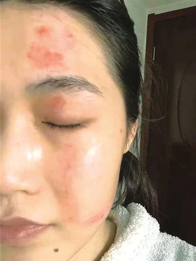 張軒臉部至今還有大片紅痕