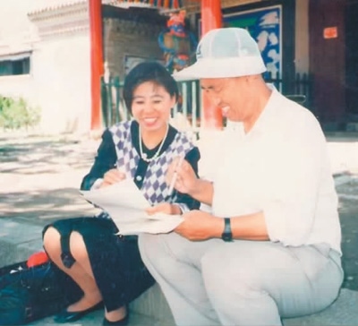 1993年,高曉梅與父親高旺(右)討論稿件。