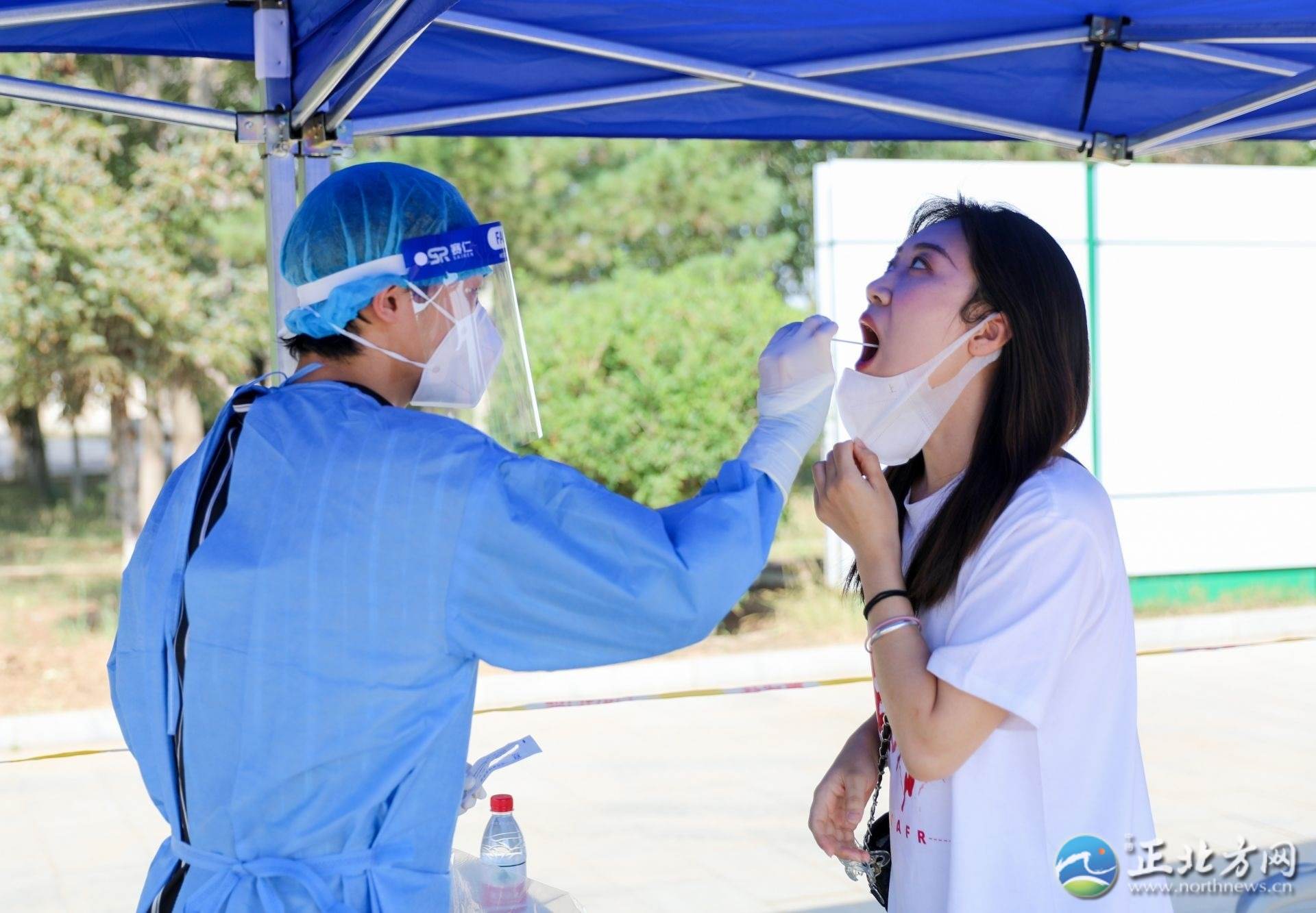 記者看到,在學(xué)校門(mén)口,學(xué)校設(shè)立了返校專用通道,核對(duì)信息、測(cè)溫、消毒、查看健康碼、行程碼和核酸檢測(cè)……返校學(xué)生佩戴著口罩正在按入校流程有序進(jìn)入校園,工作人員不斷提醒學(xué)生注意保持一米安全距離。進(jìn)入校園后,學(xué)生還需現(xiàn)場(chǎng)進(jìn)行核酸檢測(cè)。