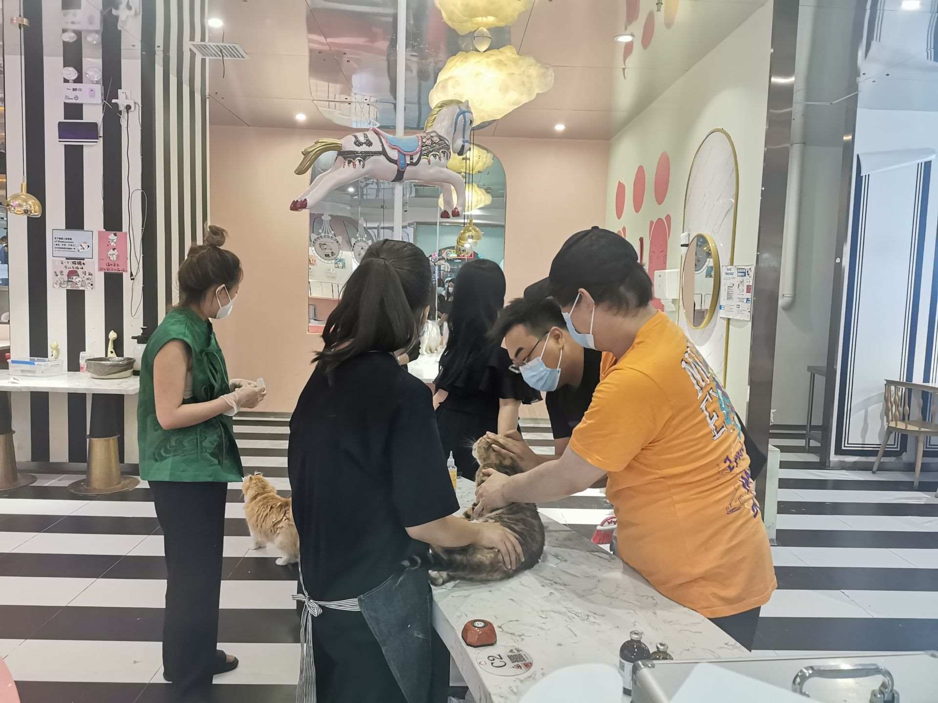 7月4日下午,記者來到店內(nèi),只見店內(nèi)供電已恢復(fù),屋內(nèi)窗明幾凈,完全無異味,室內(nèi)環(huán)境大為改觀,志愿者團(tuán)隊(duì)們?cè)诘陜?nèi)忙碌打掃,對(duì)貓咪們進(jìn)行體檢、滴藥、梳毛,現(xiàn)場(chǎng)井然有序,貓咪的狀態(tài)明顯活躍很多。