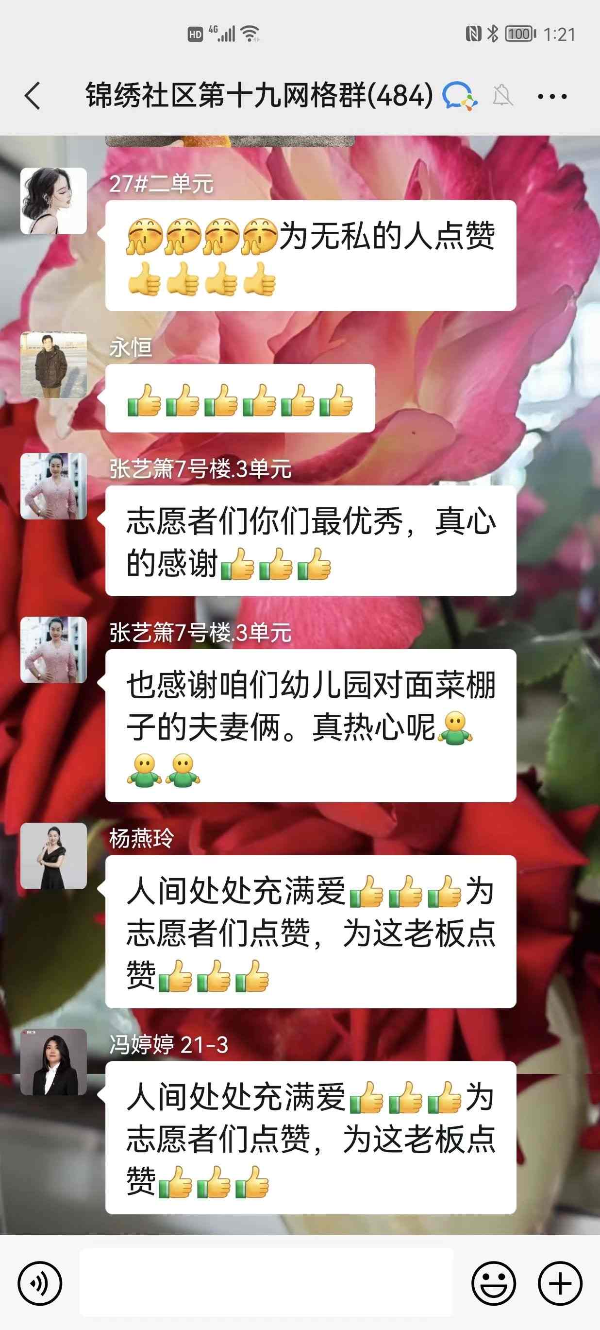“10元、20元、30元、50元、100元……”10月28日晚,在錦繡社區(qū)第十九網(wǎng)格群,業(yè)主的捐款紛至沓來(lái),短短4個(gè)小時(shí)籌款近萬(wàn)元。原來(lái),由于景觀花園小區(qū)物業(yè)原有的消殺工作人員肌肉拉傷,消殺速度遠(yuǎn)遠(yuǎn)達(dá)不到預(yù)期,業(yè)主楊博鵬便在群里發(fā)出組建一支消殺志愿者團(tuán)隊(duì)的倡議,號(hào)召業(yè)主們捐款購(gòu)買(mǎi)專業(yè)消殺彌霧機(jī)和藥品。沒(méi)想到倡議得到了廣大業(yè)主的一致響應(yīng),“我報(bào)名!”“我也報(bào)名,躺著也是躺著,不如干點(diǎn)有意義的事!”網(wǎng)格群里沸騰起來(lái),大家紛紛解囊相助,張富、斯琴吐、薛國(guó)清、崔占、史永生等15位業(yè)主還踴躍報(bào)名參加消殺志愿者團(tuán)隊(duì)。