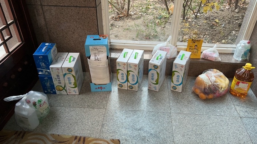 為了避免鄰居們錯(cuò)拿或少拿物資,每天把物資搬運(yùn)回單元門(mén)廳后,都會(huì)一一拍照標(biāo)記戶(hù)號(hào)后發(fā)在居民微信群里,暖心地提醒鄰居們領(lǐng)取物資時(shí)一定要做好防護(hù),消殺到位。