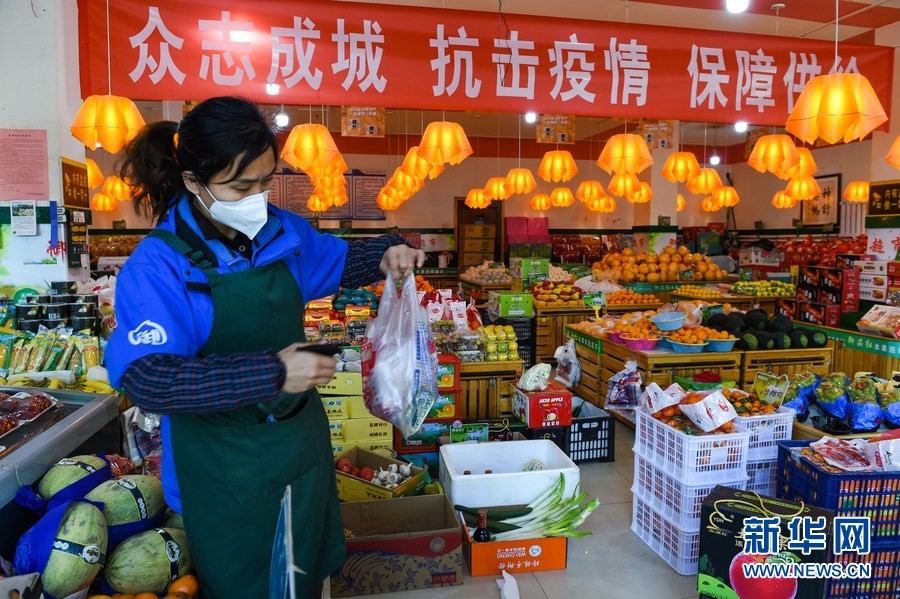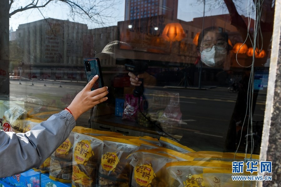 11月17日,市民在呼和浩特市新城區(qū)一家商店進行無接觸購物。新華社記者 王澤聰 攝