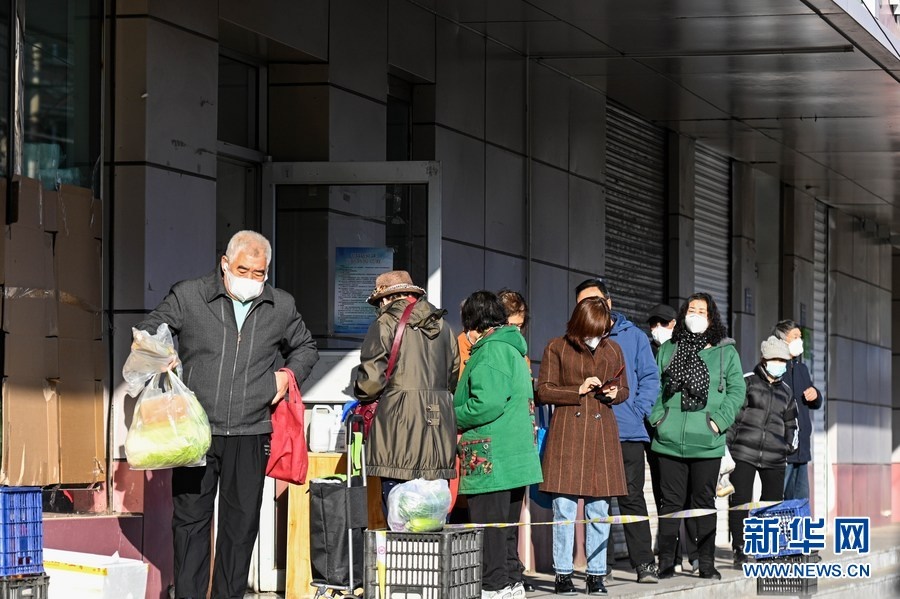 11月17日,市民在呼和浩特市新城區(qū)一家商店排隊購物。新華社記者 王澤聰 攝