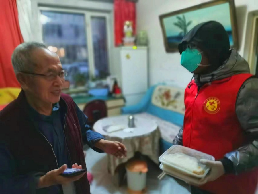 疫情發(fā)生后,老人所在的小區(qū)出現(xiàn)陽性感染者,小區(qū)封閉后,吃飯成了問題,恰巧遇到了張偉。張偉了解到這個情況后,就主動承擔(dān)起為老人義務(wù)送飯的任務(wù)。