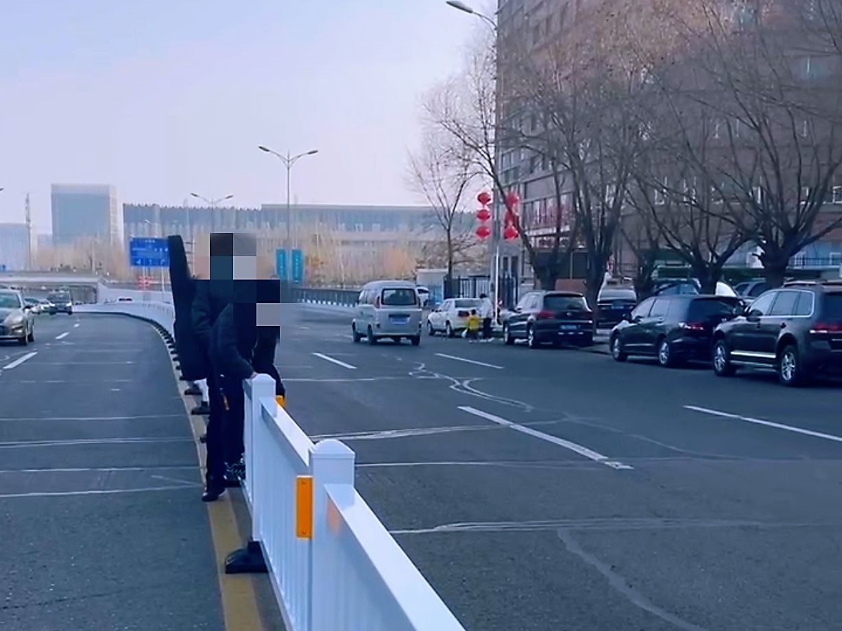2月18日下午,記者來(lái)到興泰東河灣小區(qū),看到在北垣街和騰飛路十字路口至海東路與騰飛路交叉口之間的護(hù)欄顏色較新,護(hù)欄全長(zhǎng)有約一公里,在小區(qū)居民進(jìn)出的位置或者公交車(chē)站牌附近沒(méi)有設(shè)置開(kāi)口。有一些公交車(chē)下車(chē)的乘客,看往來(lái)車(chē)輛少時(shí)便冒險(xiǎn)翻越護(hù)欄。